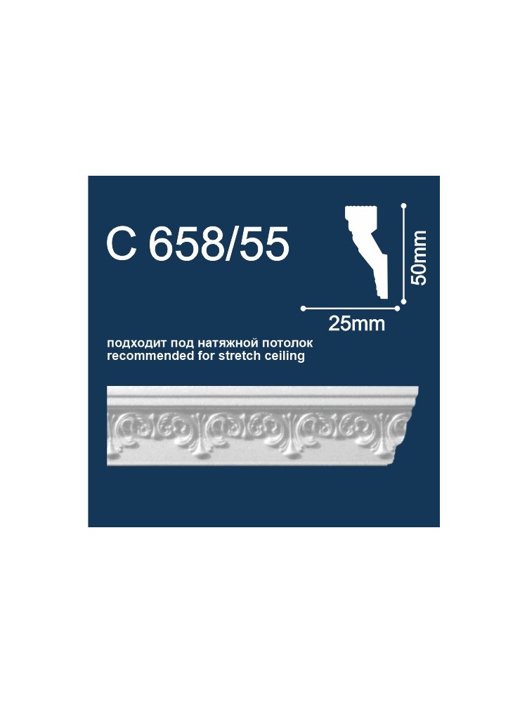 Плинтус потолочный С658/55 (2м/ 50х25мм) (70) Подходит под натяжной потолок в Солнечный