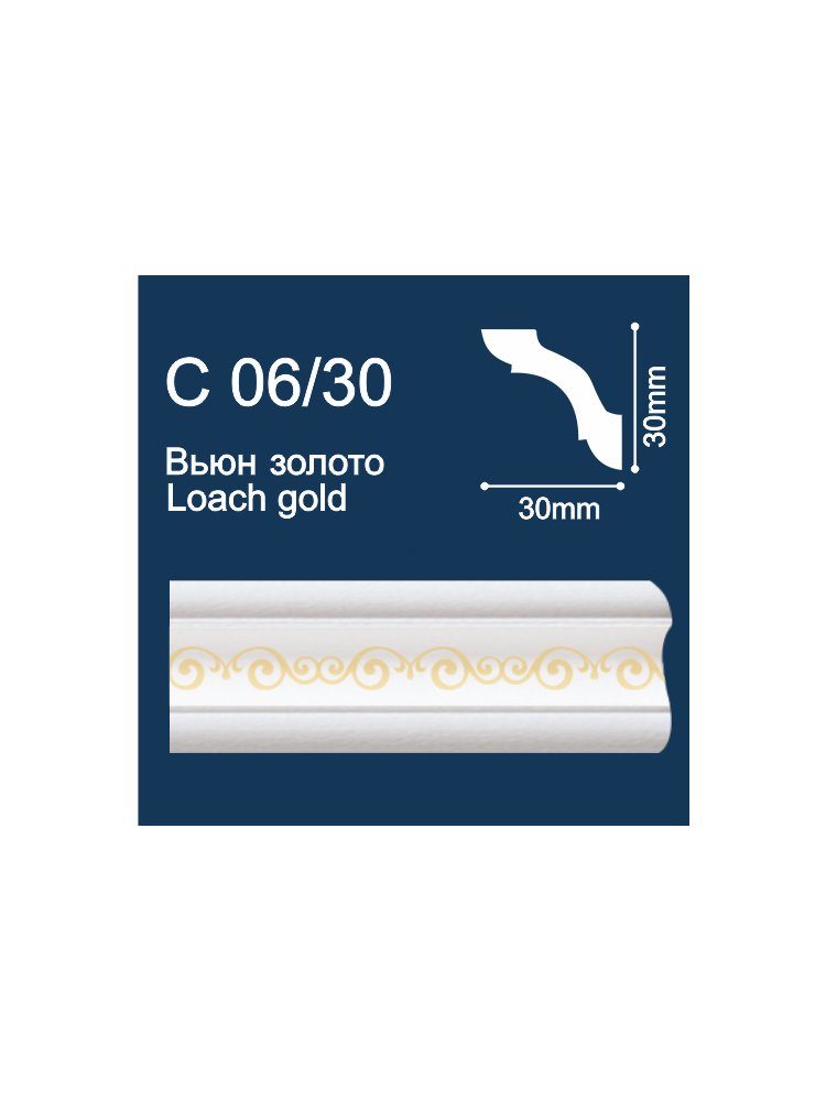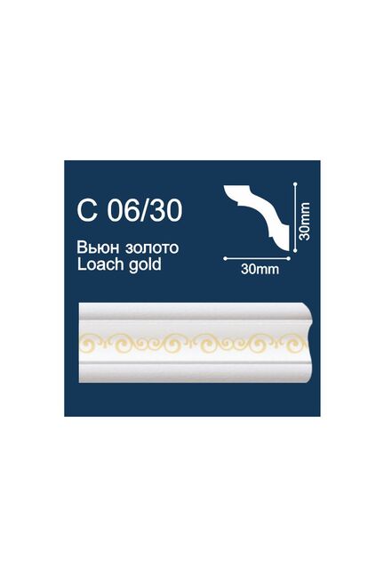 Плинтус потолочный C06/30 (2м/ 30x30мм) с печ. Вьюн/ Серебро (280)