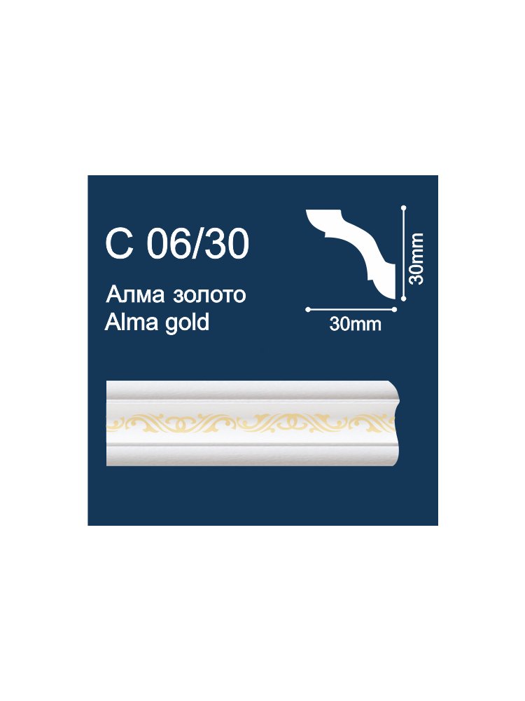 Плинтус потолочный C06/30 (2м/ 30x30мм) с печ. Алма/ Золото (280) в Солнечный