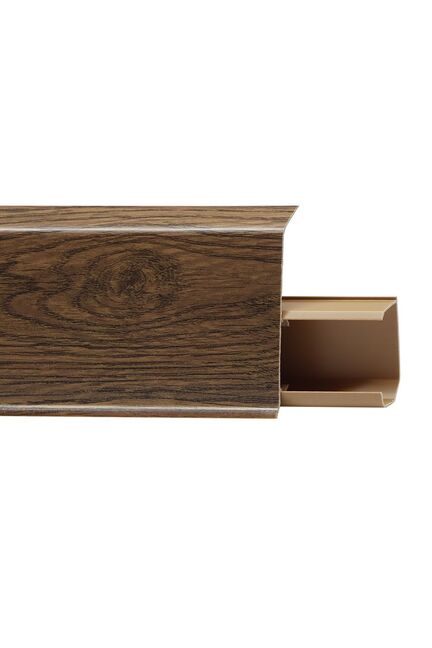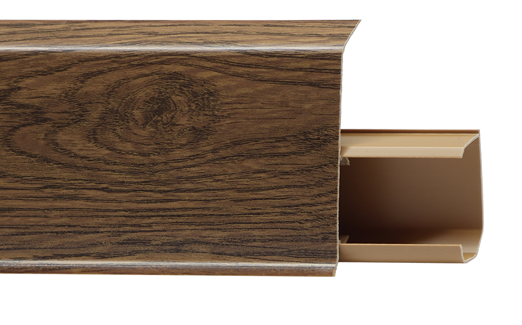 Утонченный и высокий профиль (72 мм) с острыми краями. Благодаря съёмной панели монтаж электрических проводов, покраска стен, оклеивание обоями возможны без демонтажа профилей. Конструкция позволяет монтировать и демонтировать плинтус без использования инструментов. Существует возможность размещения большого количества проводов, в том числе после монтажа. Специальная двухслойная технология: помимо слоя краски, дополнительно покрывается специальным лаком, благодаря чему его покрытие становится однородным, а это дополнительно защищает изделие от разного вида механических повреждений и вредного воздействия лучей УФ. Благодаря эластичному материалу, плинтус идеально прилегает даже к неровностям стен и полов. Ударопрочный влагостойкий плинтус 72 мм с кабель-каналом, легко монтируется и защищает соединение пола и стены, устойчив к повреждениям.