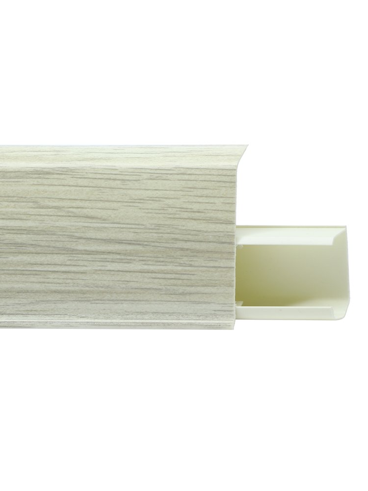 Утонченный и высокий профиль (72 мм) с острыми краями. Благодаря съёмной панели монтаж электрических проводов, покраска стен, оклеивание обоями возможны без демонтажа профилей. Конструкция позволяет монтировать и демонтировать плинтус без использования инструментов. Существует возможность размещения большого количества проводов, в том числе после монтажа. Специальная двухслойная технология: помимо слоя краски, дополнительно покрывается специальным лаком, благодаря чему его покрытие становится однородным, а это дополнительно защищает изделие от разного вида механических повреждений и вредного воздействия лучей УФ. Благодаря эластичному материалу, плинтус идеально прилегает даже к неровностям стен и полов. ПВХ плинтус 2,2 м высотой 72 мм с кабель-каналом, влагостойкий, ударопрочный, цвет дуб эден, легко монтируется и подходит для любого интерьера.