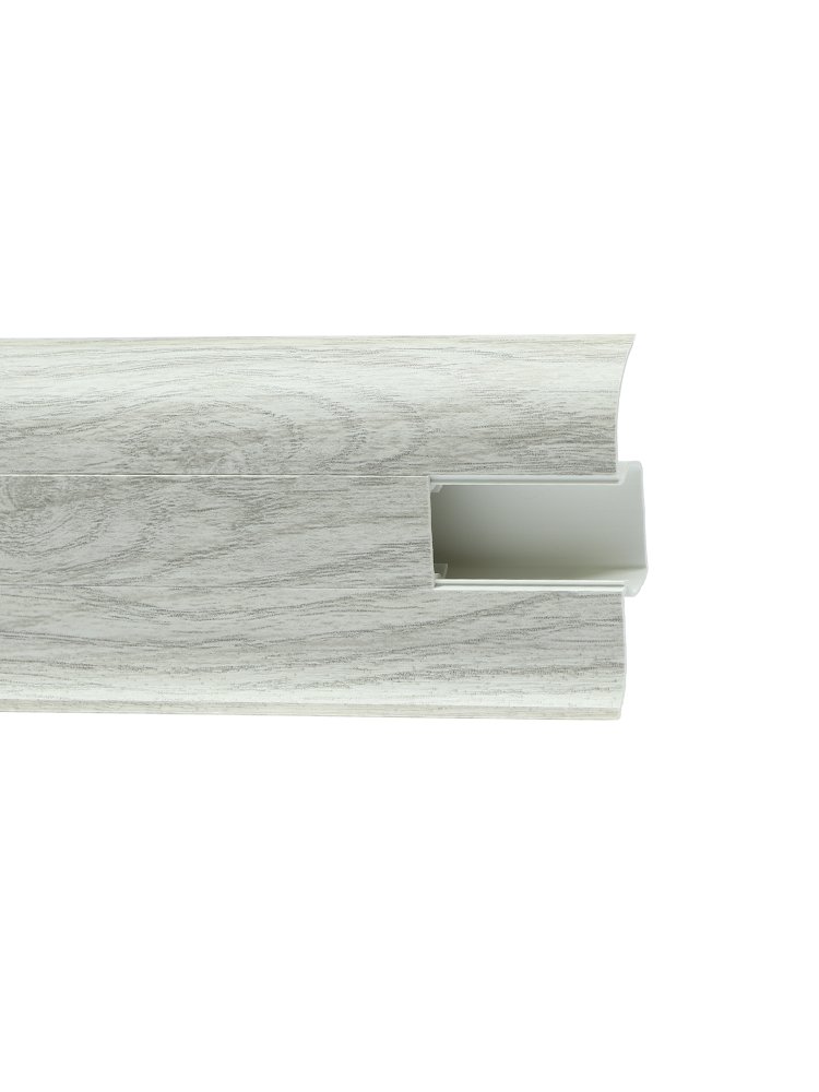 Утонченный и высокий профиль (58 мм) с острыми краями. Благодаря съёмной панели монтаж электрических проводов, покраска стен, оклеивание обоями возможны без демонтажа профилей. Конструкция позволяет монтировать и демонтировать плинтус без использования инструментов. Существует возможность размещения большого количества проводов, в том числе после монтажа. Специальная двухслойная технология: помимо слоя краски, дополнительно покрывается специальным лаком, благодаря чему его покрытие становится однородным, а это дополнительно защищает изделие от разного вида механических повреждений и вредного воздействия лучей УФ. Благодаря эластичному материалу, плинтус идеально прилегает даже к неровностям стен и полов. Стильный ПВХ-плинтус 58 мм, дуб веронский, длина 2,5 м, влагостойкий, с каналом для кабеля – идеально для современного интерьера.