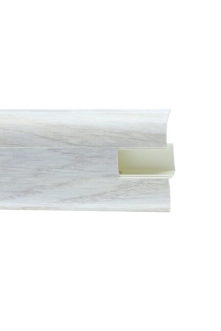 Утонченный и высокий профиль (58 мм) с острыми краями. Благодаря съёмной панели монтаж электрических проводов, покраска стен, оклеивание обоями возможны без демонтажа профилей. Конструкция позволяет монтировать и демонтировать плинтус без использования инструментов. Существует возможность размещения большого количества проводов, в том числе после монтажа. Специальная двухслойная технология: помимо слоя краски, дополнительно покрывается специальным лаком, благодаря чему его покрытие становится однородным, а это дополнительно защищает изделие от разного вида механических повреждений и вредного воздействия лучей УФ. Благодаря эластичному материалу, плинтус идеально прилегает даже к неровностям стен и полов. Стильный плинтус 58 мм, дуб, 2,5 м: для аккуратной отделки, защиты стен и скрытия проводов, износостойкий, влагостойкий, реалистичная фактура.