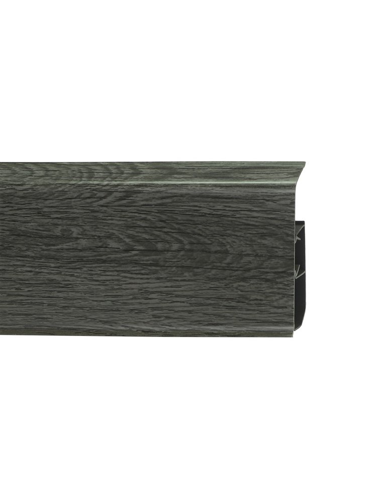 Утонченный и высокий профиль (80 мм) с острыми краями. Благодаря съёмной панели монтаж электрических проводов, покраска стен, оклеивание обоями возможны без демонтажа профилей. Конструкция позволяет монтировать и демонтировать плинтус без использования инструментов. Существует возможность размещения большого количества проводов, в том числе после монтажа. Специальная двухслойная технология: помимо слоя краски, дополнительно покрывается специальным лаком, благодаря чему его покрытие становится однородным, а это дополнительно защищает изделие от разного вида механических повреждений и вредного воздействия лучей УФ. Благодаря эластичному материалу, плинтус идеально прилегает даже к неровностям стен и полов. Стильный плинтус с текстурой дуба, высота 80мм, длина 2,2м, влагостойкий, лёгкий монтаж, скрывает провода и обеспечивает аккуратный интерьер.