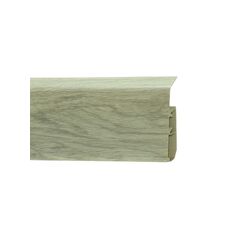 Утонченный и высокий профиль (58 мм) с острыми краями. Благодаря съёмной панели монтаж электрических проводов, покраска стен, оклеивание обоями возможны без демонтажа профилей. Конструкция позволяет монтировать и демонтировать плинтус без использования инструментов. Существует возможность размещения большого количества проводов, в том числе после монтажа. Специальная двухслойная технология: помимо слоя краски, дополнительно покрывается специальным лаком, благодаря чему его покрытие становится однородным, а это дополнительно защищает изделие от разного вида механических повреждений и вредного воздействия лучей УФ. Благодаря эластичному материалу, плинтус идеально прилегает даже к неровностям стен и полов. Плинтус 58 мм с кабель-каналом, в декоре дуб Пиреней. Стойкий к влаге и ударам. Легко устанавливается, скрывает провода. Длина — 2,2 м.