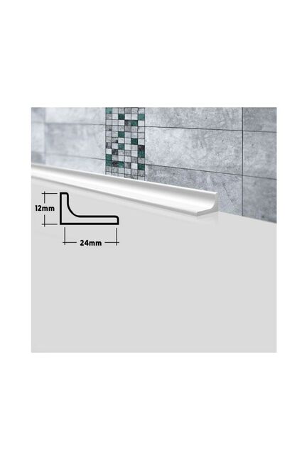 Служит для скрытия стыков между раковиной или ванной и стеной. Акриловый камень, из которого сделаны бордюры, очень плотный и прочный материал. В нем нет пор, поэтому в нём не заводятся плесень и грибок. Он прост в уходе, не боится влажности и бытовой химии, не меняет свой цвет и форму. Для распила потребуется ножовка по металлу или торцовочная пила с диском по дереву или алюминию, монтаж производится на герметик или водостойкий клей. Влагостойкий, акриловый бордюр для герметизации стыков, белый, 12×24×1800 мм. Лёгкий монтаж, защита от плесени и эстетичный внешний вид.