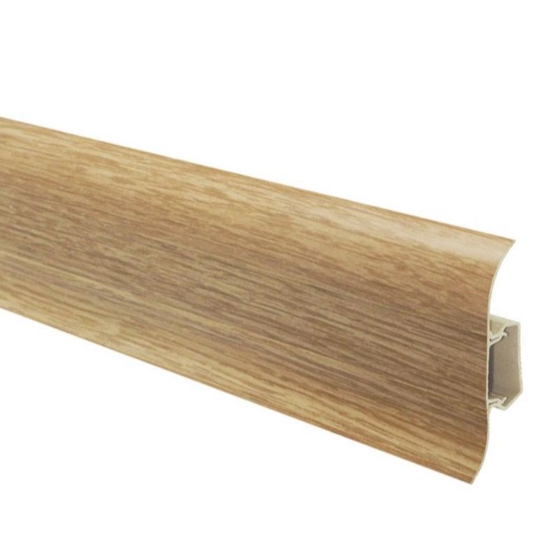 Утонченный и высокий профиль (58 мм) с острыми краями. Благодаря съёмной панели монтаж электрических проводов, покраска стен, оклеивание обоями возможны без демонтажа профилей. Конструкция позволяет монтировать и демонтировать плинтус без использования инструментов. Существует возможность размещения большого количества проводов, в том числе после монтажа. Специальная двухслойная технология: помимо слоя краски, дополнительно покрывается специальным лаком, благодаря чему его покрытие становится однородным, а это дополнительно защищает изделие от разного вида механических повреждений и вредного воздействия лучей УФ. Благодаря эластичному материалу, плинтус идеально прилегает даже к неровностям стен и полов.