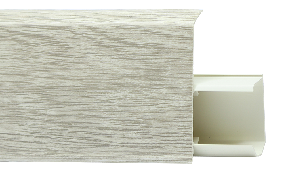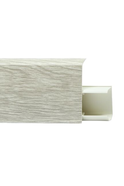 Утонченный и высокий профиль (72 мм) с острыми краями. Благодаря съёмной панели монтаж электрических проводов, покраска стен, оклеивание обоями возможны без демонтажа профилей. Конструкция позволяет монтировать и демонтировать плинтус без использования инструментов. Существует возможность размещения большого количества проводов, в том числе после монтажа. Специальная двухслойная технология: помимо слоя краски, дополнительно покрывается специальным лаком, благодаря чему его покрытие становится однородным, а это дополнительно защищает изделие от разного вида механических повреждений и вредного воздействия лучей УФ. Благодаря эластичному материалу, плинтус идеально прилегает даже к неровностям стен и полов. Прочный соединитель цвета "Дуб Пацифик" для аккуратного соединения плинтусов, простой монтаж, устойчивый к истиранию, комплект 2 шт., длина 72 мм.