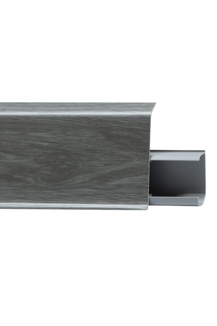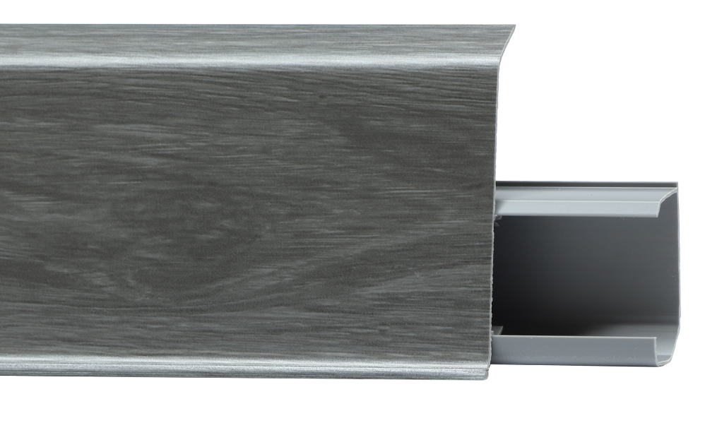 Утонченный и высокий профиль (72 мм) с острыми краями. Благодаря съёмной панели монтаж электрических проводов, покраска стен, оклеивание обоями возможны без демонтажа профилей. Конструкция позволяет монтировать и демонтировать плинтус без использования инструментов. Существует возможность размещения большого количества проводов, в том числе после монтажа. Специальная двухслойная технология: помимо слоя краски, дополнительно покрывается специальным лаком, благодаря чему его покрытие становится однородным, а это дополнительно защищает изделие от разного вида механических повреждений и вредного воздействия лучей УФ. Благодаря эластичному материалу, плинтус идеально прилегает даже к неровностям стен и полов. Металлический соединитель 72 мм для профилей, удобен в монтаже, устойчив к коррозии, подходит для гипсокартонных и каркасных систем.