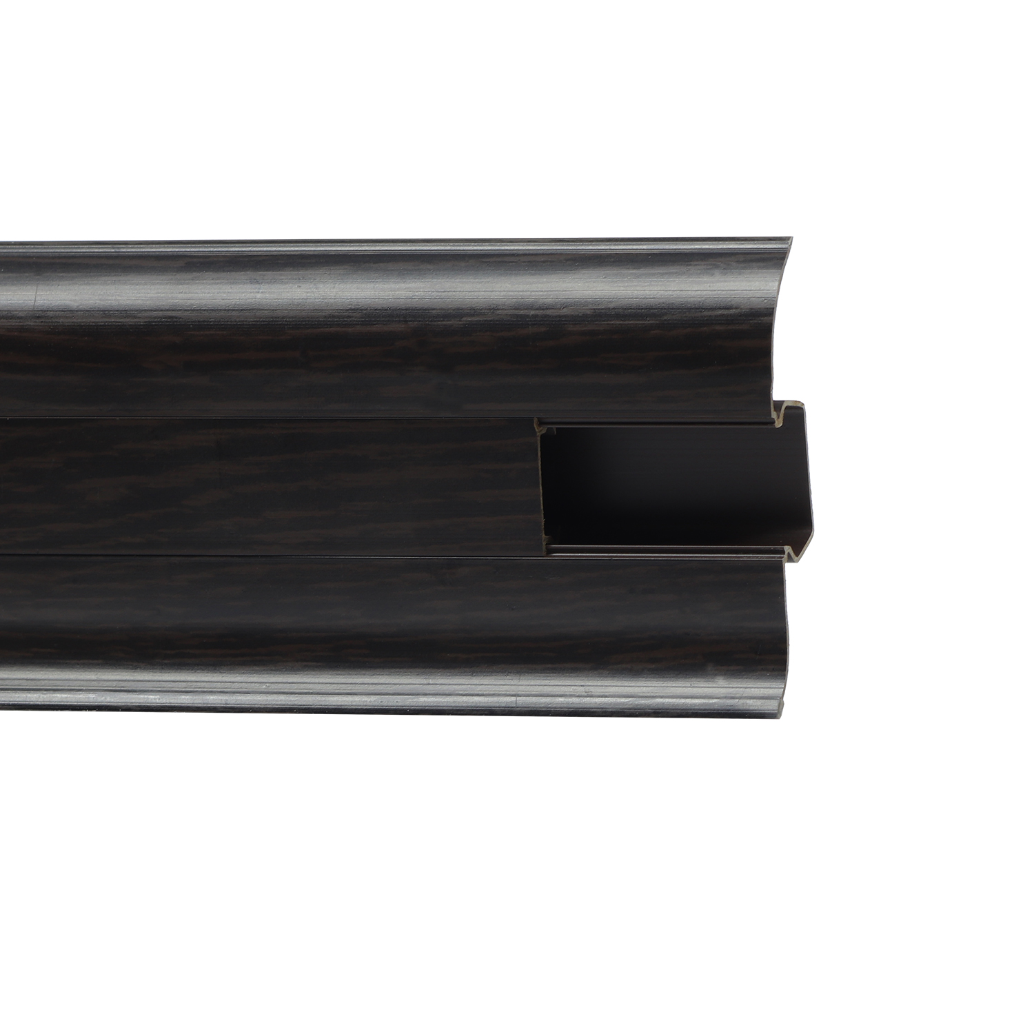 Утонченный и высокий профиль (58 мм) с острыми краями. Благодаря съёмной панели монтаж электрических проводов, покраска стен, оклеивание обоями возможны без демонтажа профилей. Конструкция позволяет монтировать и демонтировать плинтус без использования инструментов. Существует возможность размещения большого количества проводов, в том числе после монтажа. Специальная двухслойная технология: помимо слоя краски, дополнительно покрывается специальным лаком, благодаря чему его покрытие становится однородным, а это дополнительно защищает изделие от разного вида механических повреждений и вредного воздействия лучей УФ. Благодаря эластичному материалу, плинтус идеально прилегает даже к неровностям стен и полов. Соединитель для напольных плинтусов, цвет венге, ширина 58 мм. Легкая установка, 2 шт. в упаковке, сохраняет эстетику и прочность стыка.