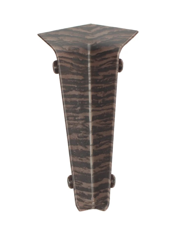 Утонченный и высокий профиль (72 мм) с острыми краями. Благодаря съёмной панели монтаж электрических проводов, покраска стен, оклеивание обоями возможны без демонтажа профилей. Конструкция позволяет монтировать и демонтировать плинтус без использования инструментов. Существует возможность размещения большого количества проводов, в том числе после монтажа. Специальная двухслойная технология: помимо слоя краски, дополнительно покрывается специальным лаком, благодаря чему его покрытие становится однородным, а это дополнительно защищает изделие от разного вида механических повреждений и вредного воздействия лучей УФ. Благодаря эластичному материалу, плинтус идеально прилегает даже к неровностям стен и полов. Прочный уголок для внутреннего соединения плинтусов 72 мм, имитация дуба, легко крепится, скрывает стыки. В комплекте 2 штуки для простого монтажа.