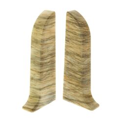 Утонченный и высокий профиль (58 мм) с острыми краями. Благодаря съёмной панели монтаж электрических проводов, покраска стен, оклеивание обоями возможны без демонтажа профилей. Конструкция позволяет монтировать и демонтировать плинтус без использования инструментов. Существует возможность размещения большого количества проводов, в том числе после монтажа. Специальная двухслойная технология: помимо слоя краски, дополнительно покрывается специальным лаком, благодаря чему его покрытие становится однородным, а это дополнительно защищает изделие от разного вида механических повреждений и вредного воздействия лучей УФ. Благодаря эластичному материалу, плинтус идеально прилегает даже к неровностям стен и полов. Заглушки для плинтуса 58 мм, цвет "Дуб Эллора", износостойкий пластик, легко устанавливаются, маскируют срезы, комплект 2 шт.