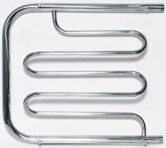 Водяное боковое подключение, Размер подключения 1", 4 вставки, Sотапл. пом.<3,2м², с полочкой Компактный полотенцесушитель 60×60 см: быстро сушит и обогревает, защищает от влаги, устойчив к коррозии, легко монтируется в любой интерьер.