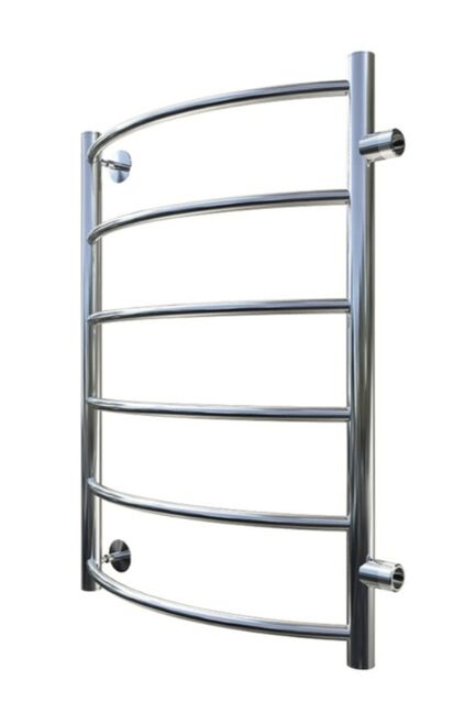Полотенцесушитель типа "лесенка" с боковым подключением дуговидными вставками с полкой. Серия 1 предполагает равномерное размещение вставок. Полотенцесушитель имеет наружнюю резьбу на боковых выводах. В комплекте имеются заглушка с краном маевского и телескопические держатели. Водяной полотенцесушитель 50×80×40 см из нержавеющей стали, быстро сушит вещи, легко монтируется и обеспечивает защиту от влаги и плесени.