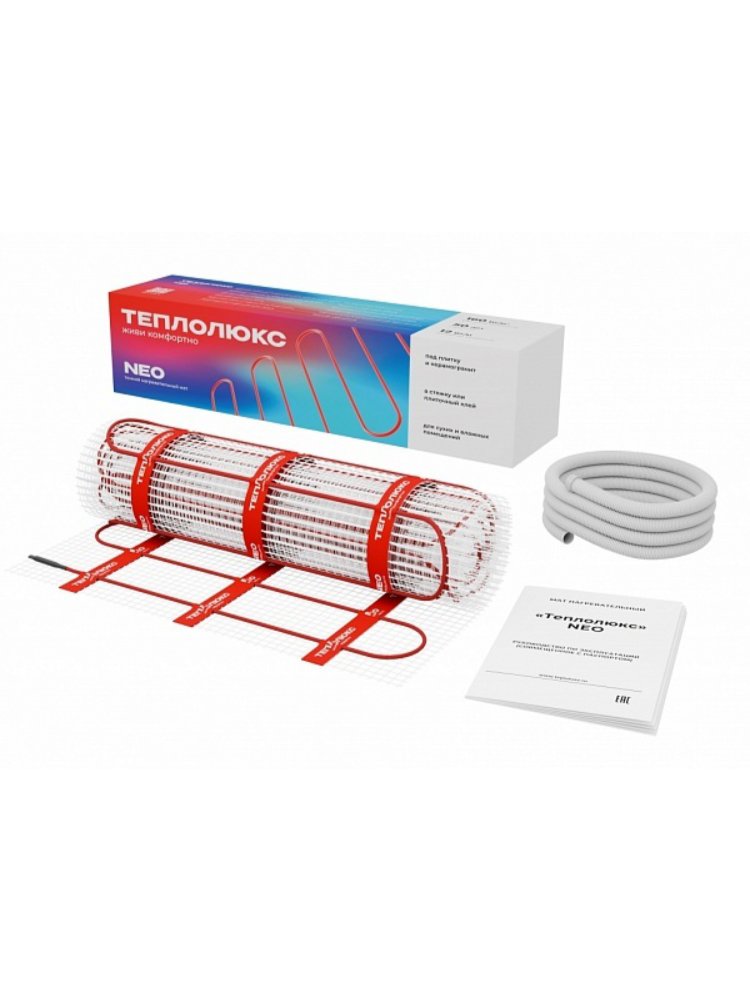 Теплый пол на основе нагревательных матов «Теплолюкс» Neo – это новый стандарт электрического теплого пола с высоким уровнем надежности и комфорта.Нагревательные маты Neo предназначены для обеспечения комфортной температуры поверхности пола при наличии основной системы отопления.При производстве нагревательных матов NEO используется кабель с линейной мощностью 12Вт/м, что существенно снижает риск перегрева. Удельная мощность 160 Вт/м2 и шаг раскладки двухжильного нагревательного кабеля всего 7 см обеспечивают быстрый и эффективный прогрев всей поверхности пола без эффекта тепловой "зебры".Нагревательный кабель крепко зафиксирован на сетке из стекловолокна без эффекта памяти, что упрощает монтаж и формирует надежную долговечную конструкцию мата.Фирменная литая муфта из термостойкого материала обеспечивает высочайший класс надежности электрического подключения. Удобный и быстрый монтаж в плиточный клей или стяжку, не поднимает уровень пола. Тонкий мат 2 кв.м, мощность 320 Вт, монтаж без стяжки, подходит для пли