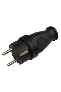 Влагозащищённая каучуковая вилка 16А IP44 с заземлением, устойчива к повреждениям и проста в монтаже — идеально для стройки и мастерской.