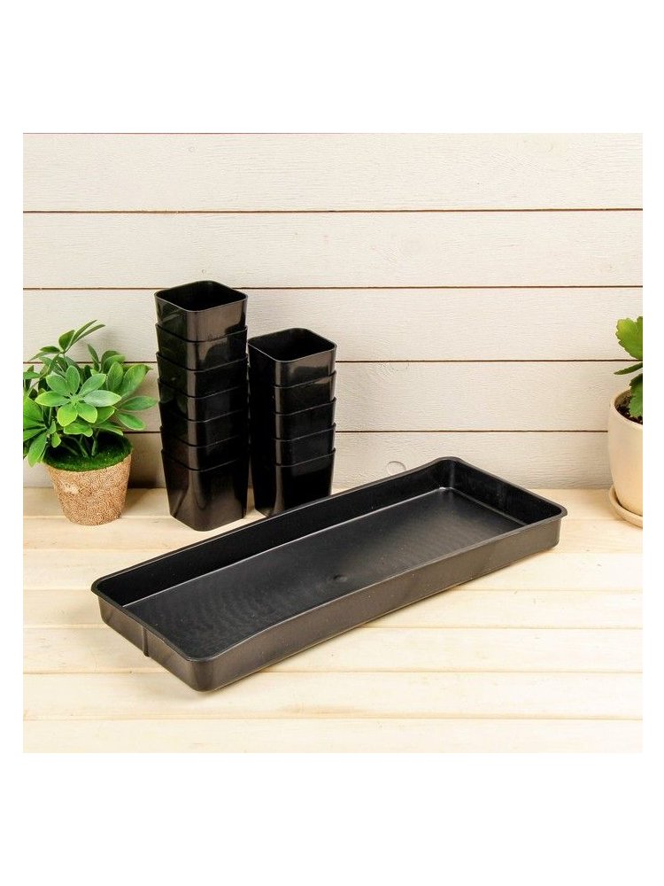 Прочный пластиковый поддон, защищает от протечек и грязи, оптимален для размещения стаканов с рассадой и легкой уборки рабочей зоны.