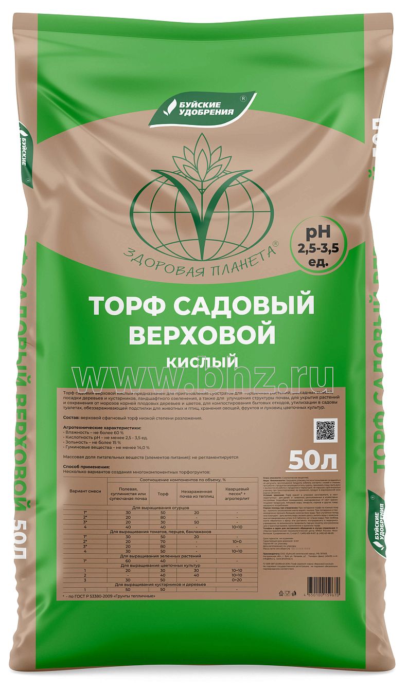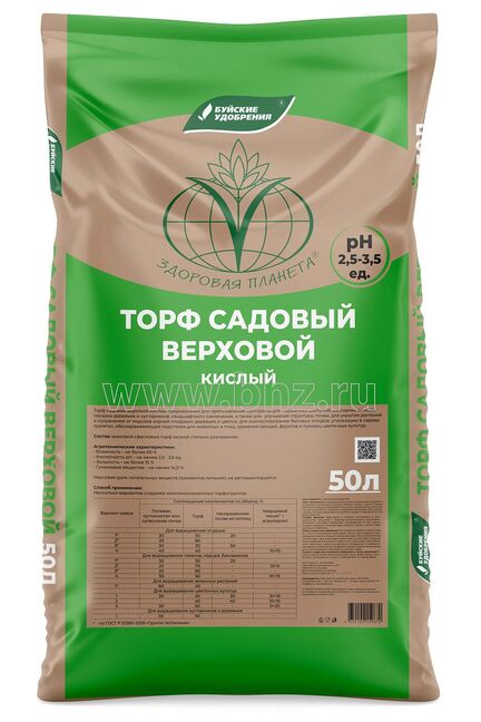 Торф садовый верховой, кислый 50л