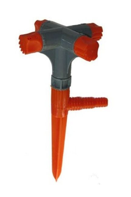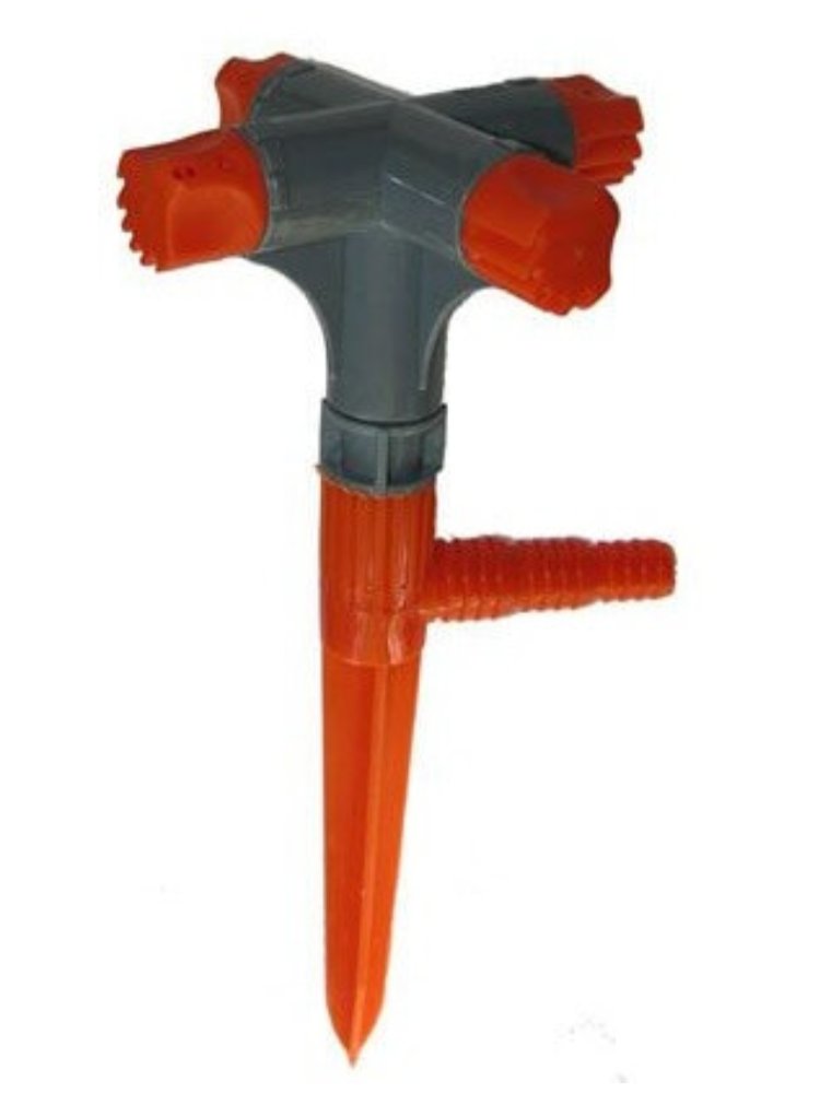 Эффективный распылитель для полива до 12 м, 4 лепестка, прочный пластик, подходит для шлангов 1/2" и 3/4", простое подключение.