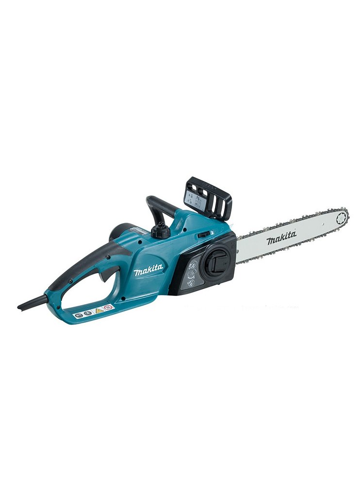 Цепная электропила Makita UC3041A предназначена для работы в саду, например для заготовки дров и распиловки бревен. Высокий крутящий момент обеспечивается мощным двигателем 1800 Вт. Замена и натяжение цепи проводится без использования вспомогательного инструмента. Удобный, хорошо сбалансированный корпус позволяет увеличить время непрерывной работы. Прорезиненная боковая и задняя рукоятки помогают достичь максимального контроля над инструментом. Потребляемая мощность 1800 Вт. Скорость движения цепи 870 м/мин. Длина шины 30 см. Шаг цепи 3/8. Ширина паза шины 1,1 мм. Вибрация 3,8 м/с². Длина кабеля 0,3 м. Пила цепная - мощность 1,8 кВт, шина 30 см, автоматическая смазка цепи, лёгкая регулировка натяжения, защита от перегрева и тормоз цепи.