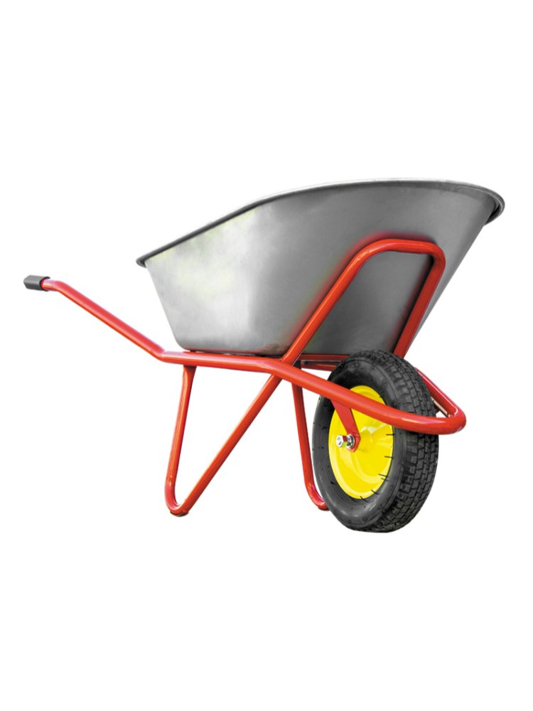 Надежная и прочная строительная одноколесная тачка с грузоподъемностью до 200 кг и объемом кузова 90 л идеально подойдет для перевозки строительных и отделочных материалов, мусора, сыпучих грузов на участке или стройке.