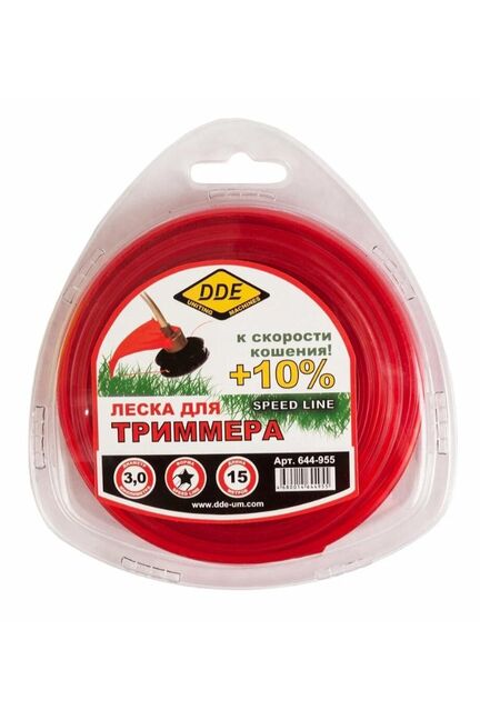 Корд триммерный Speed line DDE применяется при работе с триммерами для кошения травы. Является режущим элементом и заправляется в триммерную головку. Изготовлен из износостойкого сополимер-термопласта марки Luran S. Выдерживает интенсивную эксплуатацию на высоких оборотах. Обладает высокой скоростью кошения. Прочный триммерный корд с профилем «звезда», диаметр 3,0 мм, длина 15 м. Высокая износостойкость, идеален для заросших участков и густой травы.