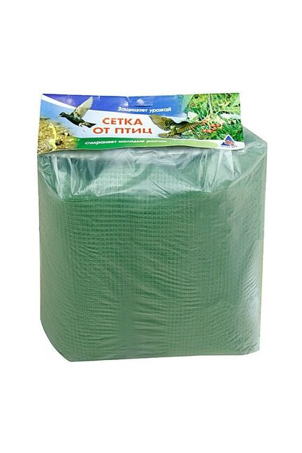 Плотная сетка 2х5 м с ячейкой 6х6 мм защищает урожай и строения от птиц, легко крепится, устойчива к погоде и не мешает росту растений.
