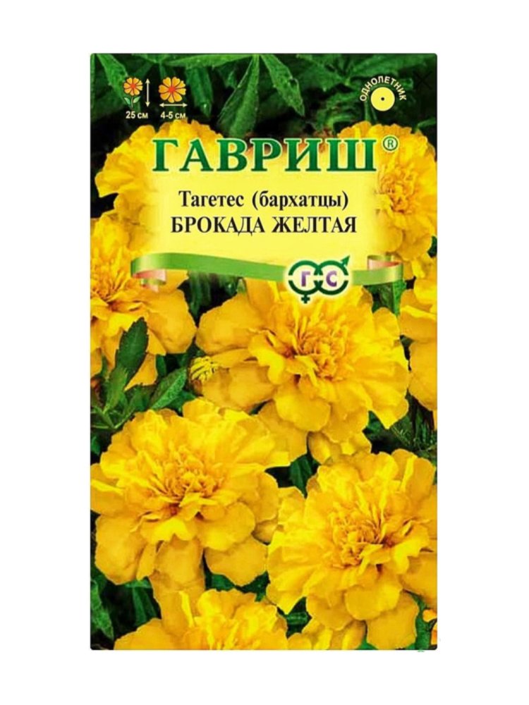 Семена цветов Бархатцы Брокада желтая, Гавриш в Солнечный