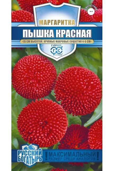 Семена цветов Маргаритка Пышка красная Гавриш в Солнечный