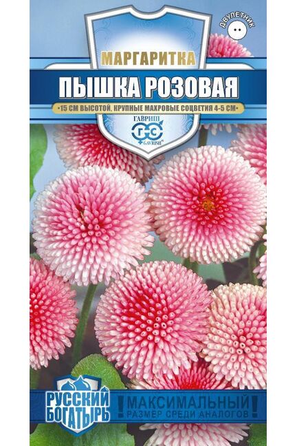 Семена цветов Маргаритка Пышка розовая Гавриш в Солнечный