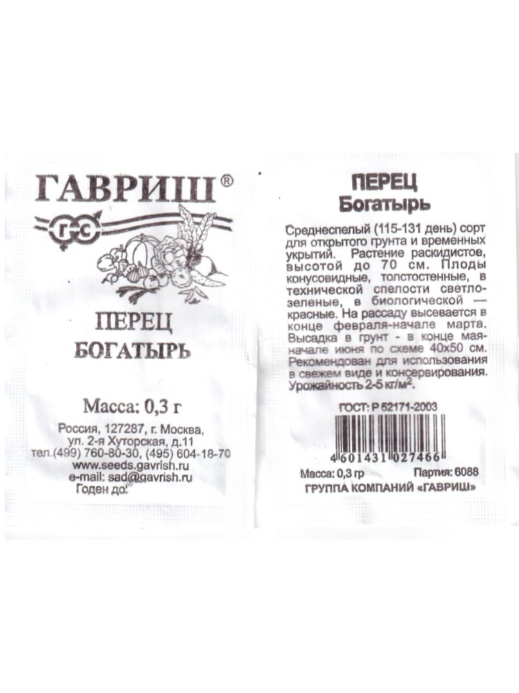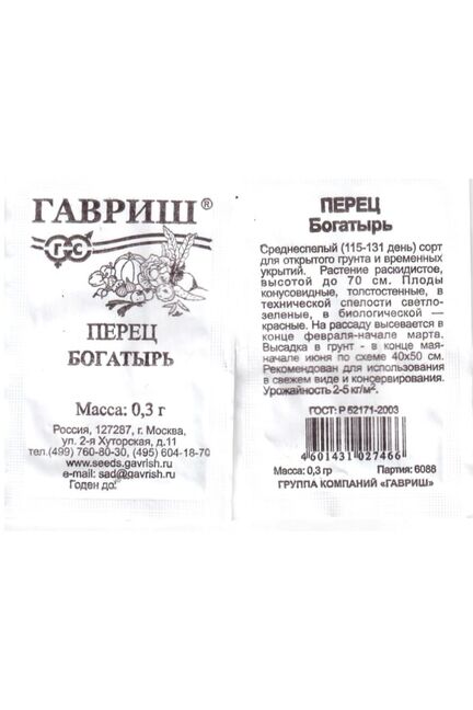 Семена Перец Богатырь б/п Гавриш в Солнечный