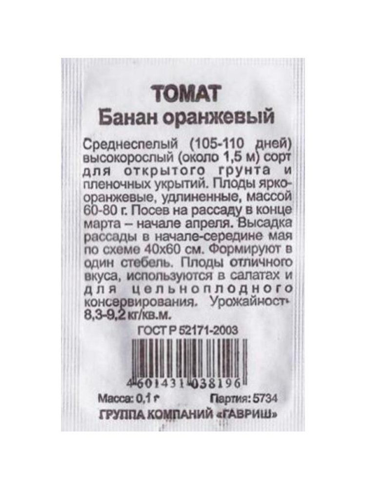 Семена Томат Банан оранжевый б/п Гавриш