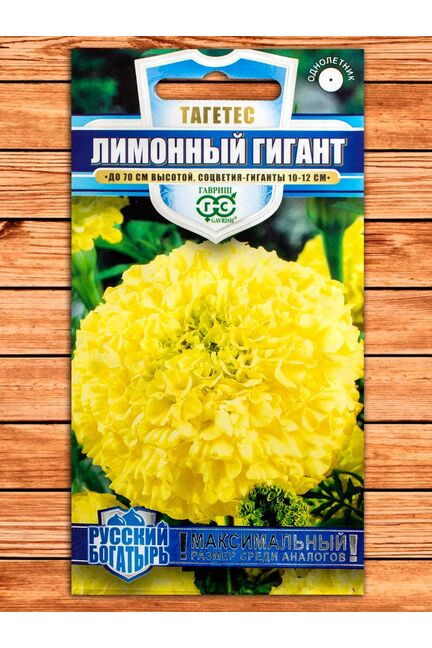 Семена цветов Бархатцы Лимонный гигант, прямостоячие 0,3гр. Гавриш