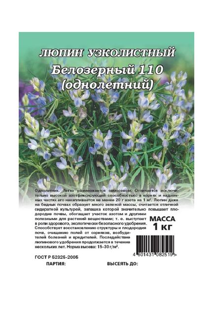 Сидерат Люпин Белозерный 110 1,0кг. Гавриш