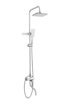 Хромированная душевая система с латунным смесителем, регулируемой высотой и двумя душами — максимум комфорта для вашей ванной комнаты.