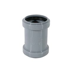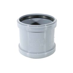 Двухраструбная муфта 110 мм из прочного полипропилена, устойчива к коррозии и температуре, для герметичного соединения канализационных труб.