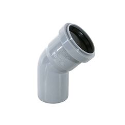 Прочный и малошумный угол 45°, диаметр 110 мм, для систем канализации. Минимум шума, быстрая установка и надежность эксплуатации.