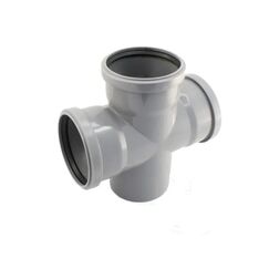 Канализационная крестовина 50/50 мм, угол 87°, для внутренней разводки, обеспечивает герметичность и стойкость к агрессивным средам.