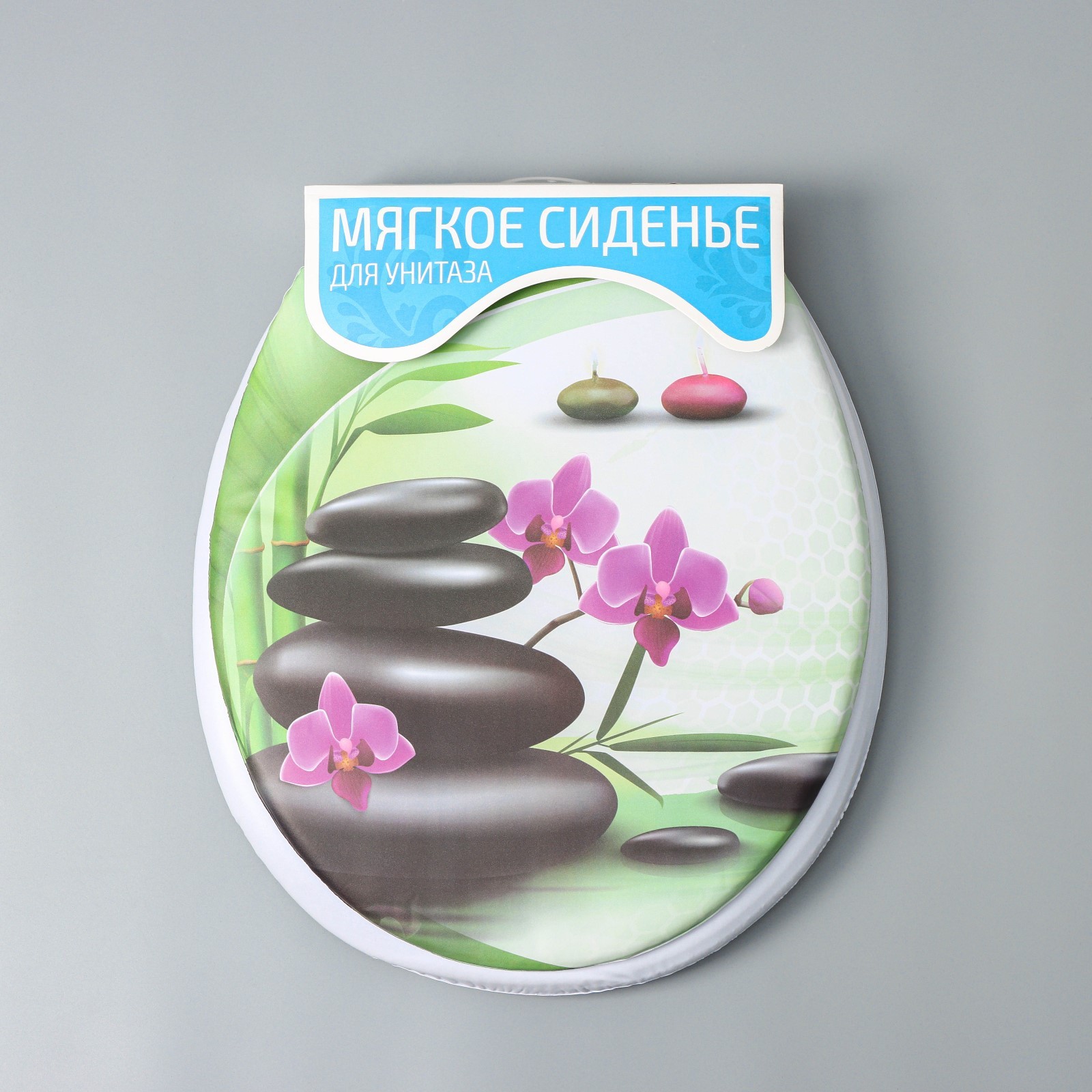 Сиденье д/унит. декор "Камни дзен" 40*37 см, овальное с мягким поролоном 1522432 в Солнечный