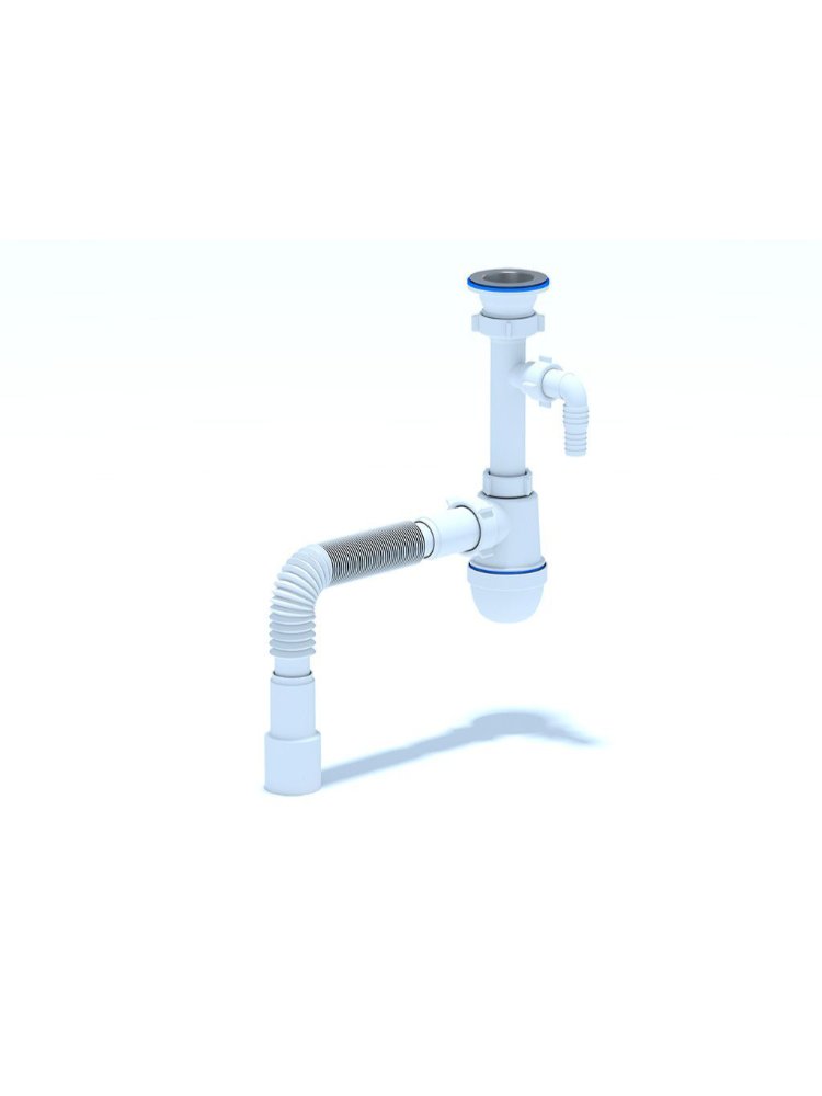 Практичный сифон с гибкой трубой и отводом для стиральной машины — идеальное решение для организации водоотвода на кухне или в хозяйственных помещениях. Он обеспечивает надежную защиту от неприятных запахов и простой подключение к сливу мойки и бытовой техники.