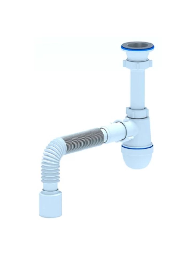 Практичное и долговечное решение для организации слива воды из кухонных моек в квартирах и частных домах. Оптимален для монтажа в условиях ограниченного пространства благодаря гибкой трубе, легко подстраивается под любые особенности расположения канализации. Подходит как для новых, так и для замены устаревших сифонов.
