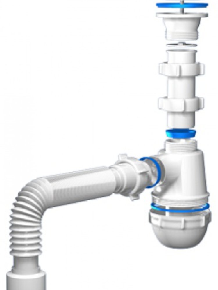 • Комплектация: сифон, гибкая труба, нержавеющий выпуск, прокладки и все необходимые элементы для сборки