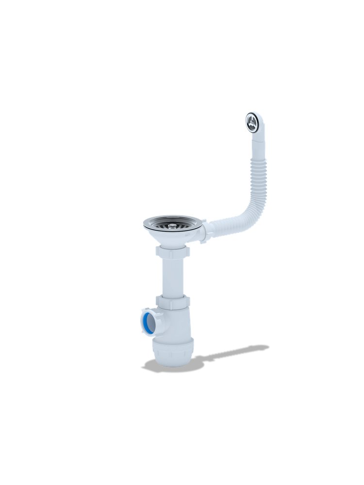Идеальное решение для современного обустройства кухни — надёжный и долговечный сифон с переливом и гибкой трубой, созданный для быстрой и эффективной отводки воды от мойки. Аксессуар подходит для большинства кухонных моек с отверстием 3 1/2" и выпуска до 40 мм.