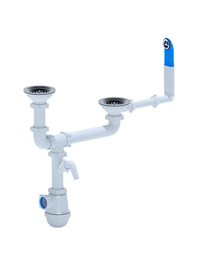 Эффективное решение для организации слива в двойных кухонных мойках с возможностью подключения стиральной или посудомоечной машины: современный сифон A3700 с гибким переливом обеспечивает надежную защиту от протечек и переполнения. Идеален для использования при обновлении кухни или монтаже новых моек в жилых и коммерческих помещениях.