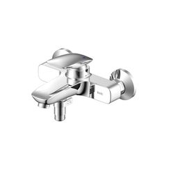 Двухвентильный смеситель для ванны с коротким изливом 6,9 см, из прочной латуни с хромированием, для настенного монтажа, без душкомплекта.