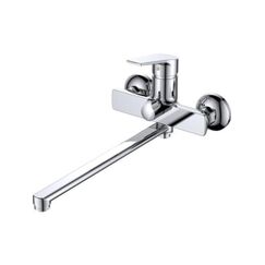 Надежный однорычажный смеситель с длинным (40 см) изливом для ванны, удобство управления, универсальное применение, современный дизайн.
