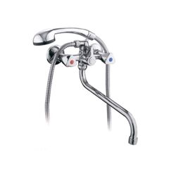 Гарантийный срок: 1 год на корпус и покрытие. Материал: Силумин Смеситель для ванны FRUD R22111, двуручный, излив 30 см, из латуни, поворотный, настенный монтаж, керамические кран-буксы, надежный и удобный.