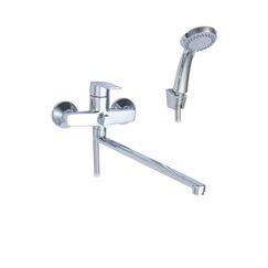 Гарантия: 5 лет Картридж с керамическими дисками. Материал: латунь Однорычажный смеситель с длинным изливом 35 см для удобного пользования ванной и душем. Простой монтаж, долговечность, универсальное применение.