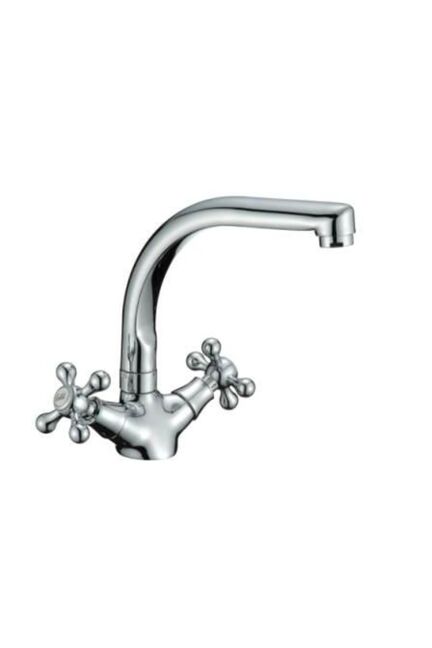 Двухвентильный смеситель с латунным корпусом, хромированным покрытием и поворотным изливом — точный контроль подачи воды для вашей кухни.