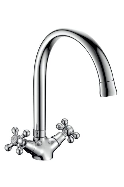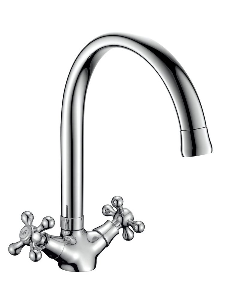 гарантия: года Двуручный смеситель для кухни из латуни с хромированием, высокий поворотный излив, точная регулировка, стойкость к коррозии и удобство в уходе.